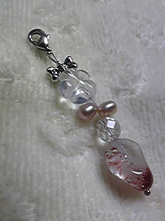 右が淡水パールと水晶のチャーム