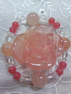 ハートのカーネリアンと薔薇の形の水晶を使ったブレスレット