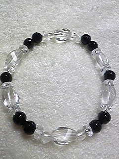 【10/11/02 №112のオニキス+水晶のブレスレット 】