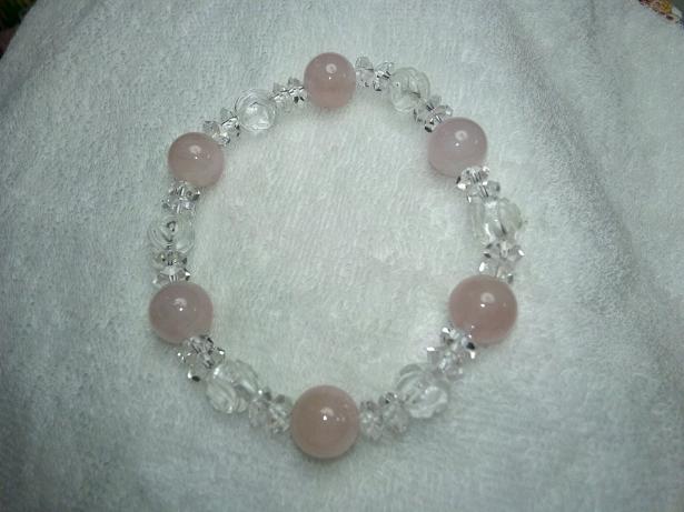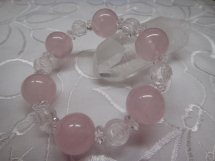 №187 ☆モルガナイトブレスレット〓モルガナイト・水晶(バラ・ボタンカット)