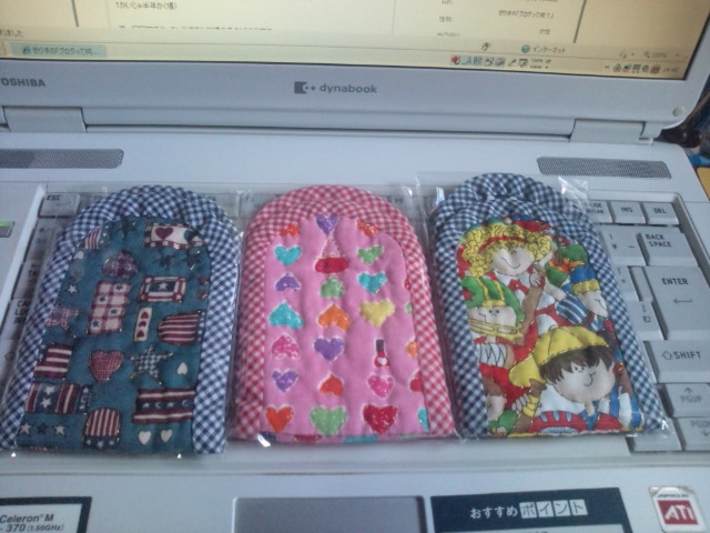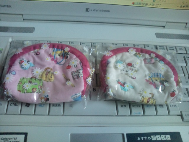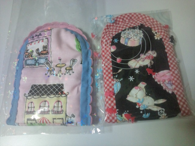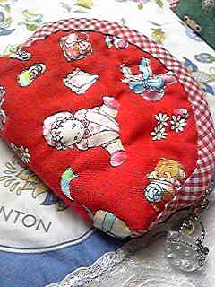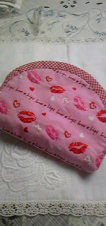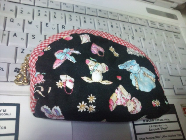 中ポーチを2個、フリフリの縁を使って作ってますが