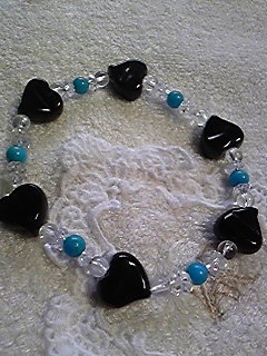 №166;オブシディアン(ハート)・ターコイズ・水晶